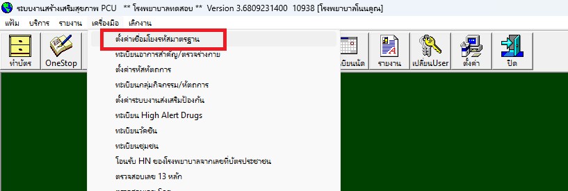 ไปที่ระบบงาน pcu > เครื่องมือ > ตั้งค่าเชื่อมโยงรหัสมาตรฐาน