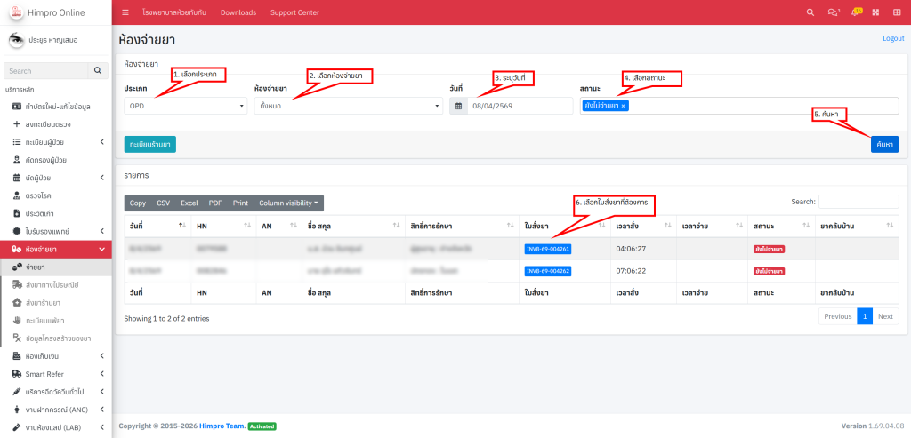 เข้าไปที่เมนู ห้องจ่ายยา > จ่ายยา