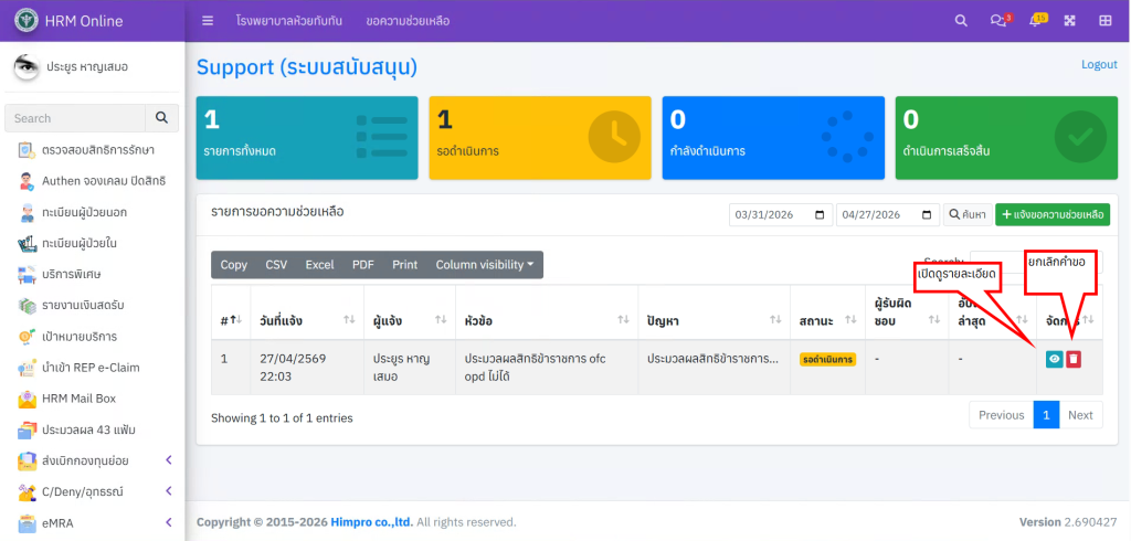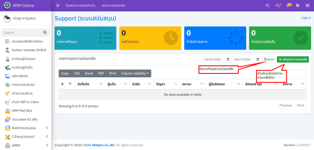 การส่งคำขอความช่วยเหลือจากทีม Support Himpro HRM
