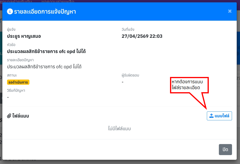 สามารถแนไฟล์เพื่อประกอบการให้ความช่วยเหลือได้
