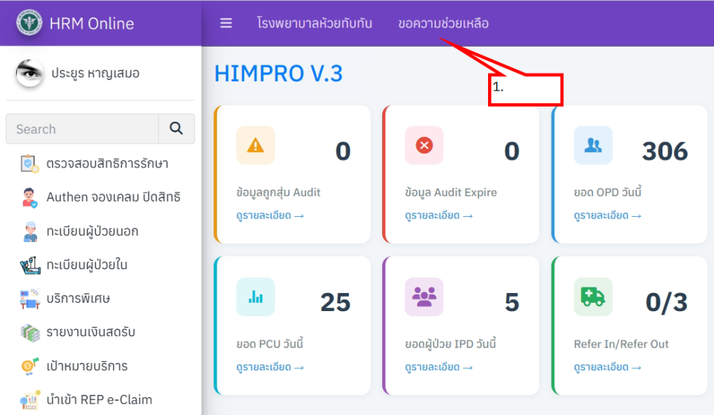 หากต้องการแจ้งปัญหา/ขอความช่วยเหลือ จากทีม Support Himpro สามารถแจ้งเข้ามาในระบบ HRM ได้แลย โดยสามารถคลิกที่ “ขอความช่วยเหลือ”
